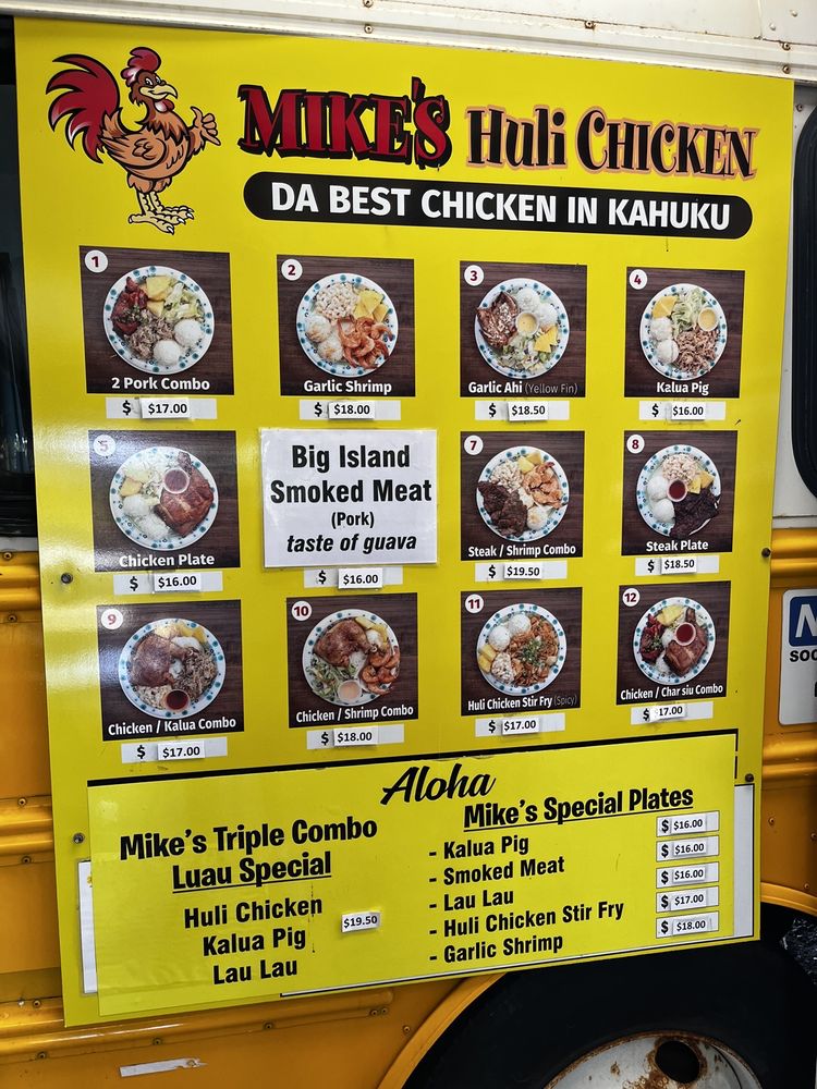 Introducing Mike's Kiawe Broiled Huli Huli Chicken, a gem nestled on 56-565 Kamehameha Hwy, Kahuku, HI. This charming eatery specializes in New American seafood with a Hawaiian twist, perfect for casual dining. The star dish, Huli Huli Chicken, embodies a unique blend of flavor, featuring perfectly smoked, tender chicken infused with a delightful sauce that will transport your taste buds to paradise.